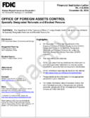 Financial Institution Letters (FILs) are addressed to the Chief Executive Officers of the financial institutions on the FIL's distribution list -- generally, FDIC-supervised institutions. FILs may announce new regulations and policies, new FDIC publications, and a variety of other matters of principal interest to those responsible for operating a bank or savings association. The inactive FILs represent those letters that have been rescinded by the FDIC or have expired over time.